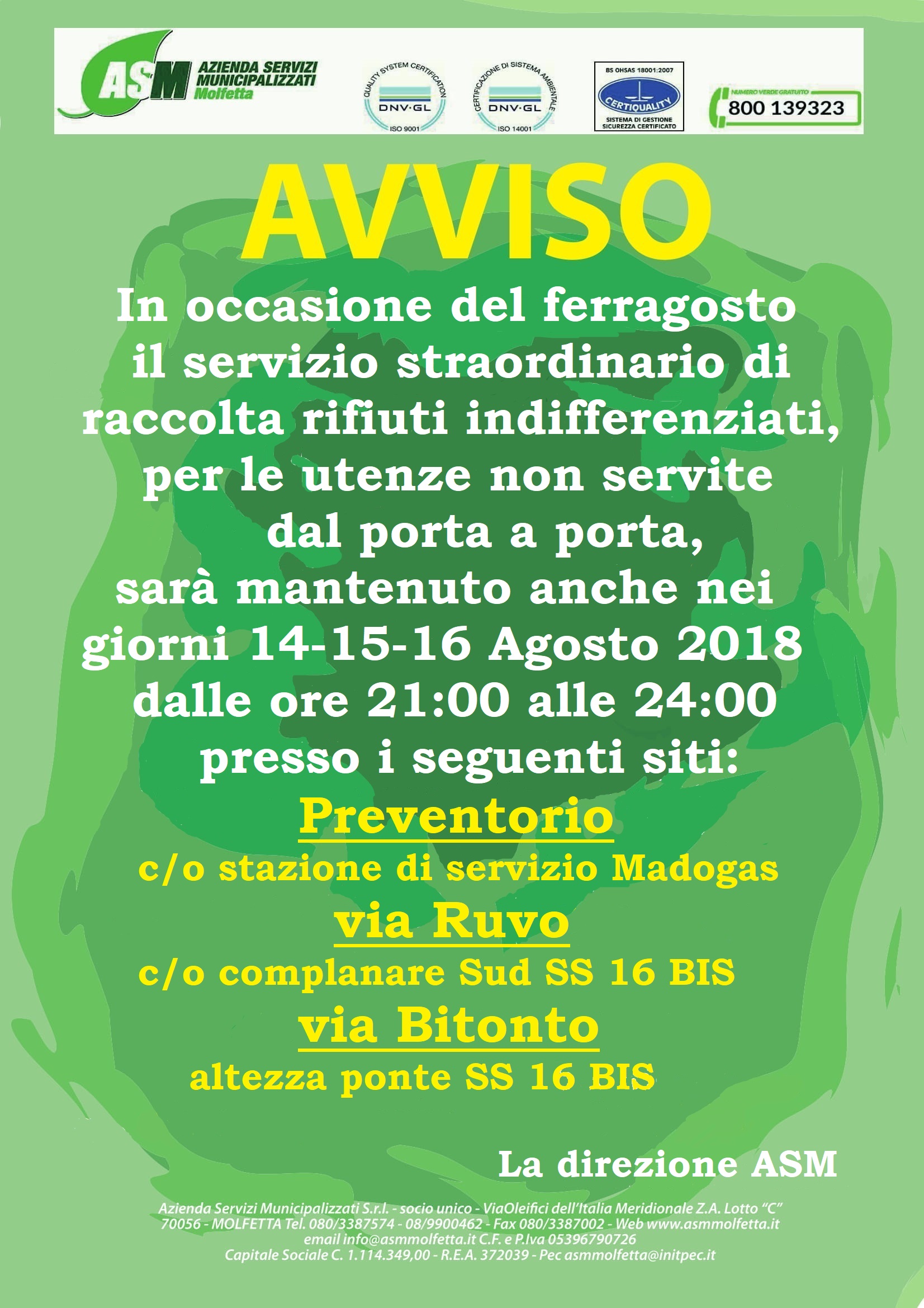 AVVISO RACCOLTA STRAORDINARIA AGRO
